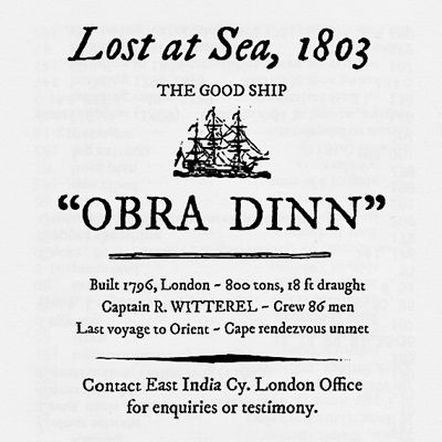 《奥伯拉丁的回归》(Return of the Obra Dinn)是一款由美国游戏设计师卢卡斯·波普(Lucas Pope)制作的冒险解谜游戏。游戏的故事背景设定在19世纪初的虚构不列颠东印度公司商船“奥伯拉丁号”上。1802年,这艘商船从伦敦出发,满载贸易货物驶向亚洲远东,却在六个月后神秘失踪。直到1808年,奥伯拉丁号突然出现在法尔茅斯港口,船帆严重受损,却不见任何船员踪影。玩家将扮演一位来自东印度公司伦敦办公所的保险调查官,负责调查这起神秘事件。