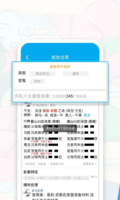 天机六爻排盘APP是一款面向周易易学大师和周易卜卦算命爱好者的在线占卜排盘算卦工具。它运用易学原理,为用户提供占卜算卦、交流学习、易学知识等功能,汇聚海量的真实案例供参考,对起卦结果进行精准分析,操作便捷,深受广大用户喜爱。